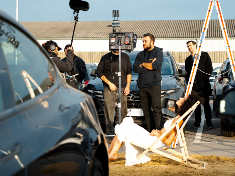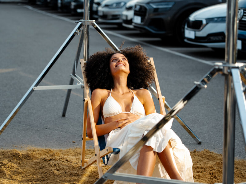 Wir hatten viele Ideen, wie wir das Erlebnis bei Panda Parken in Szene setzen: Palmwedel, Sportwagen und sogar einen eigenen Masseur – Wir konzentrierten uns dann aber doch auf das Wesentliche und schütteten lieber eine halbe Tonne Sand auf den Parkplatz! Die Erfahrung, die man bei Panda Parken macht, soll übertrieben aber nicht unrealistisch dargestellt werden – immerhin soll der/die Kund:in ja das bekommen, was er/sie erwartet.